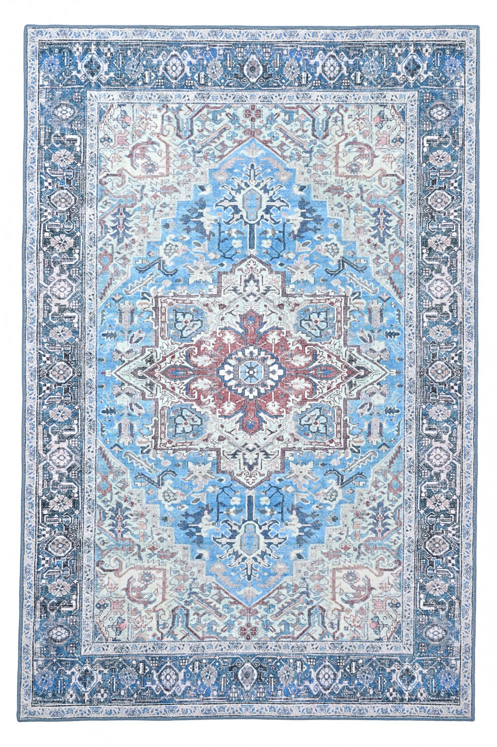 Skapa en tidlös känsla i hemmet med denna flatvävda matta i elegant vintage-stil. Det slitstarka och tunna utförandet gör mattan både lätt att placera och enkel att underhålla, samtidigt som det vackra, åldrade mönstret ger rummet en varm och karaktärsfull atmosfär. Perfekt under matbordet, i vardagsrummet eller hallen – en matta som förenar praktisk funktion med klassisk design.