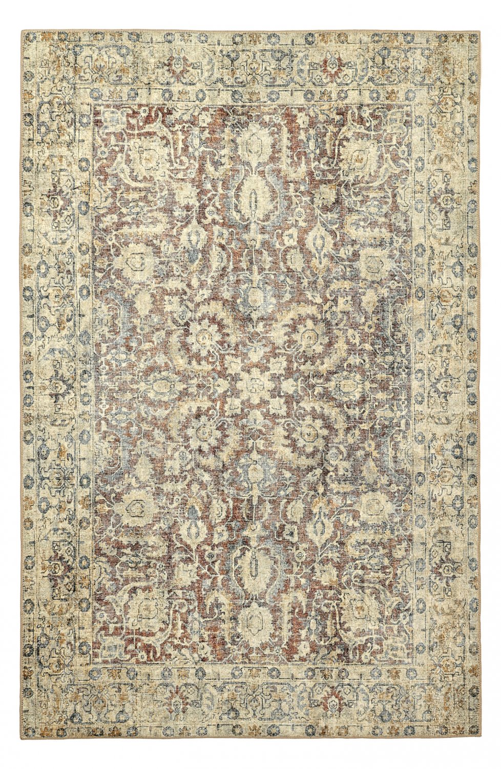 Skapa en tidlös känsla i hemmet med denna flatvävda matta i elegant vintage-stil. Det slitstarka och tunna utförandet gör mattan både lätt att placera och enkel att underhålla, samtidigt som det vackra, åldrade mönstret ger rummet en varm och karaktärsfull atmosfär. Perfekt under matbordet, i vardagsrummet eller hallen – en matta som förenar praktisk funktion med klassisk design.