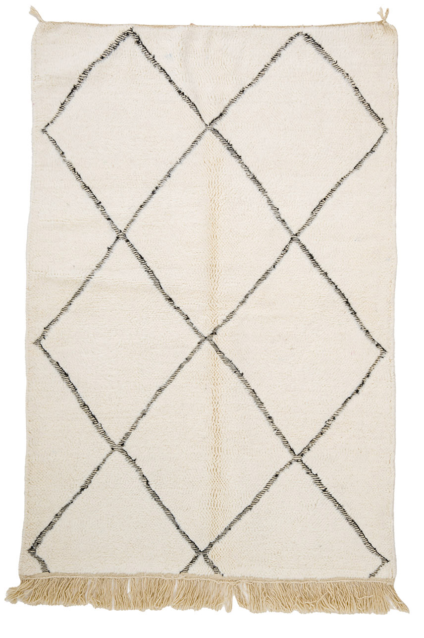 Ullen från fåren i Atlasbergen är verkligen oöverträffad och en Beni Ourain-matta är tillverkad enbart av denna rena ull i dess naturliga färger. En äkta Beni Ourain-matta är vävd med enkla och sofistikerade mönster, vilket gör den mycket eftertraktad bland designers och konsumenter världen över. En marockansk Beni Ourain-matta är ett konstverk för golvet. Om den sköts med omsorg kommer mattan att behålla sina vackra färger och ullen kommer inte att slitas ut. En matta att föra vidare i generationer.
