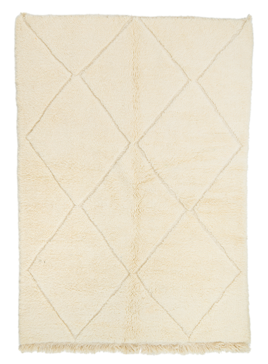 Ullen från fåren i Atlasbergen är verkligen oöverträffad och en Beni Ourain-matta är tillverkad enbart av denna rena ull i dess naturliga färger. En äkta Beni Ourain-matta är vävd med enkla och sofistikerade mönster, vilket gör den mycket eftertraktad bland designers och konsumenter världen över. En marockansk Beni Ourain-matta är ett konstverk för golvet. Om den sköts med omsorg kommer mattan att behålla sina vackra färger och ullen kommer inte att slitas ut. En matta att föra vidare i generationer.