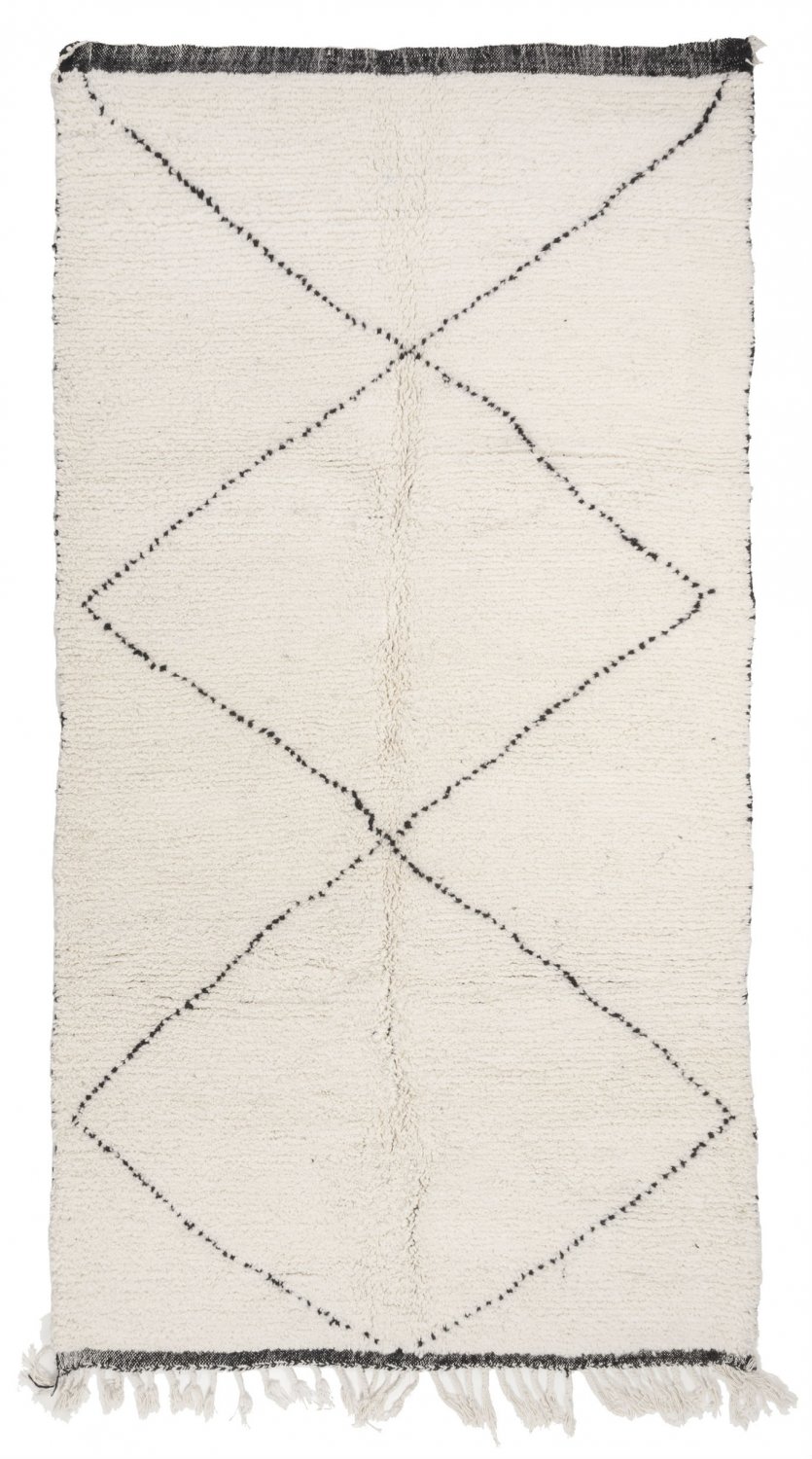 Ullen från fåren i Atlasbergen är verkligen oöverträffad och en Beni Ourain-matta är tillverkad enbart av denna rena ull i dess naturliga färger. En äkta Beni Ourain-matta är vävd med enkla och sofistikerade mönster, vilket gör den mycket eftertraktad bland designers och konsumenter världen över. En marockansk Beni Ourain-matta är ett konstverk för golvet. Om den sköts med omsorg kommer mattan att behålla sina vackra färger och ullen kommer inte att slitas ut. En matta att föra vidare i generationer.