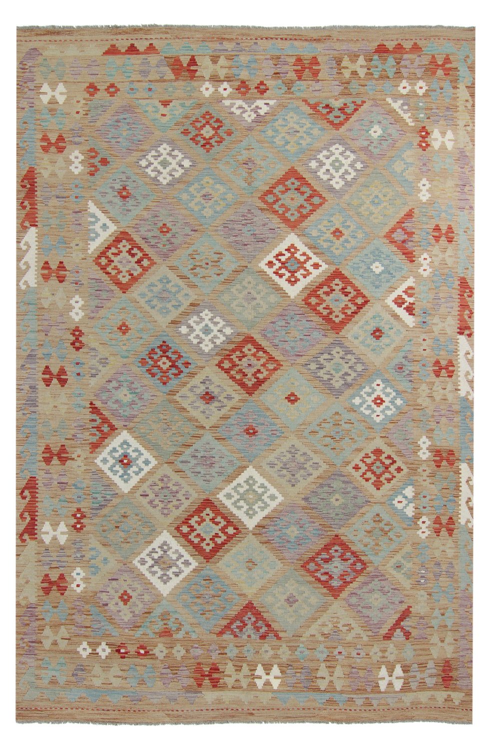 Orientalisk kelimmatta kombinerar plattvävd konstruktion med naturlig ull för en lätt, följsam matta som är enkel att placera i hall, vardagsrum eller under matbord. Den tunna profilen gör den idealisk att lägga lager på lager över större mattor.
