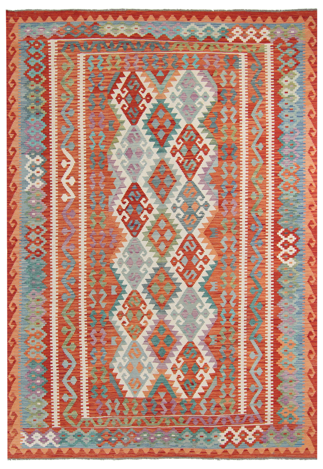 Orientalisk kelimmatta kombinerar plattvävd konstruktion med naturlig ull för en lätt, följsam matta som är enkel att placera i hall, vardagsrum eller under matbord. Den tunna profilen gör den idealisk att lägga lager på lager över större mattor.