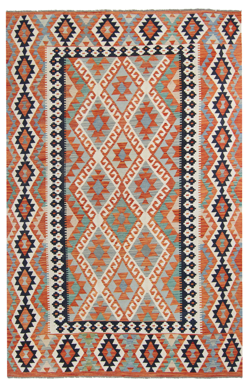 Orientalisk kelimmatta kombinerar plattvävd konstruktion med naturlig ull för en lätt, följsam matta som är enkel att placera i hall, vardagsrum eller under matbord. Den tunna profilen gör den idealisk att lägga lager på lager över större mattor.