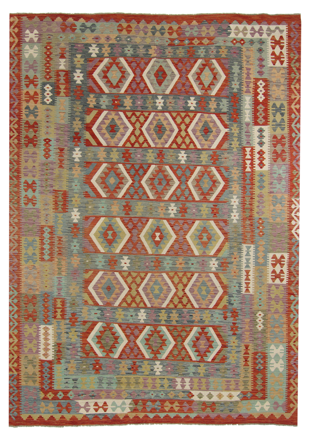 Orientalisk kelimmatta kombinerar plattvävd konstruktion med naturlig ull för en lätt, följsam matta som är enkel att placera i hall, vardagsrum eller under matbord. Den tunna profilen gör den idealisk att lägga lager på lager över större mattor.