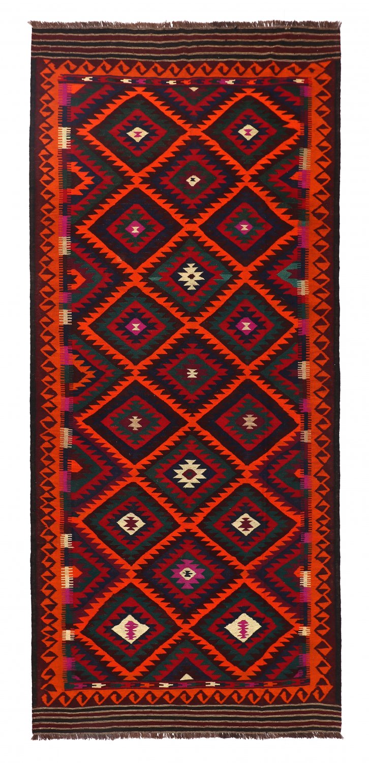 Orientalisk kelimmatta kombinerar plattvävd konstruktion med naturlig ull för en lätt, följsam matta som är enkel att placera i hall, vardagsrum eller under matbord. Den tunna profilen gör den idealisk att lägga lager på lager över större mattor.