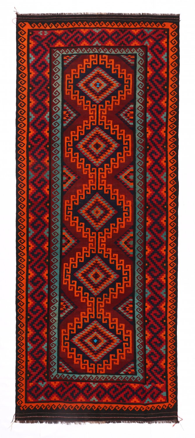 Orientalisk kelimmatta kombinerar plattvävd konstruktion med naturlig ull för en lätt, följsam matta som är enkel att placera i hall, vardagsrum eller under matbord. Den tunna profilen gör den idealisk att lägga lager på lager över större mattor.
