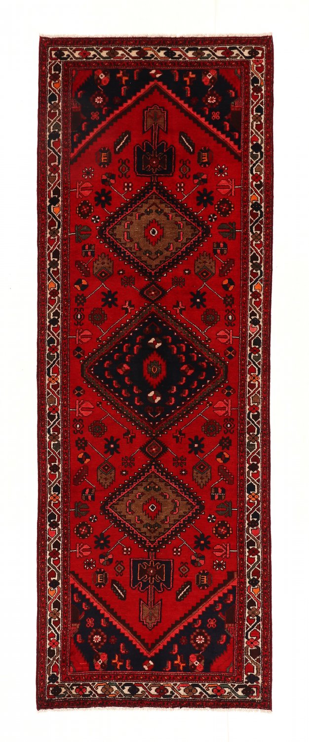 Hamedan‑mattor kännetecknas av sina tydliga geometriska mönster och ofta en framträdande medaljong. Den täta ullluggen och det handknutna utförandet ger en tålig matta som står sig väl i vardagsrum, hall och matsal. Den klassiska designen kombinerar traditionellt hantverk med en modern känsla och blir ett naturligt blickfång i hemmet.