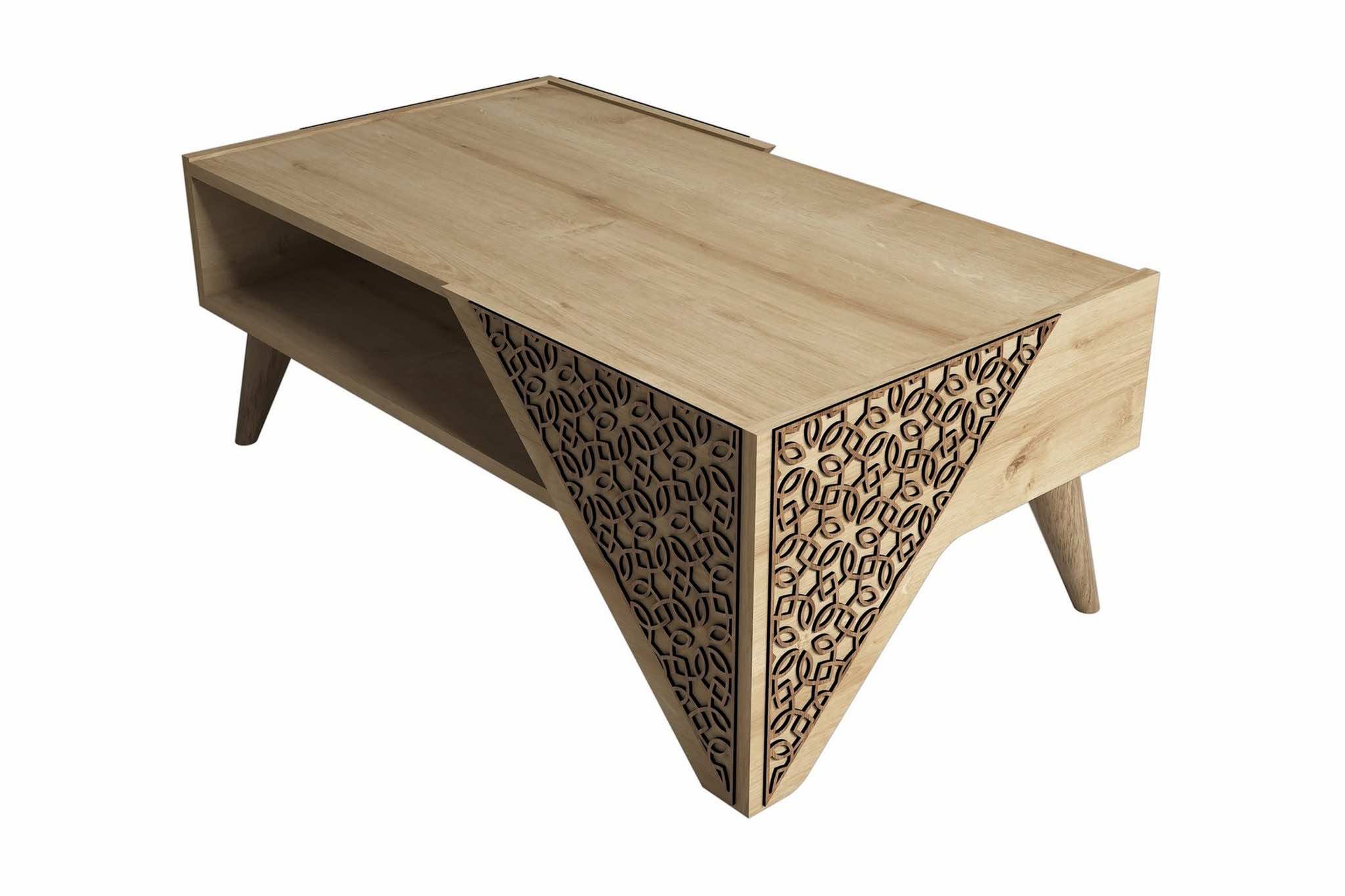 Soffbord Amtorp 105 cm med Förvaring Hylla Blommönster – Ljusbrun