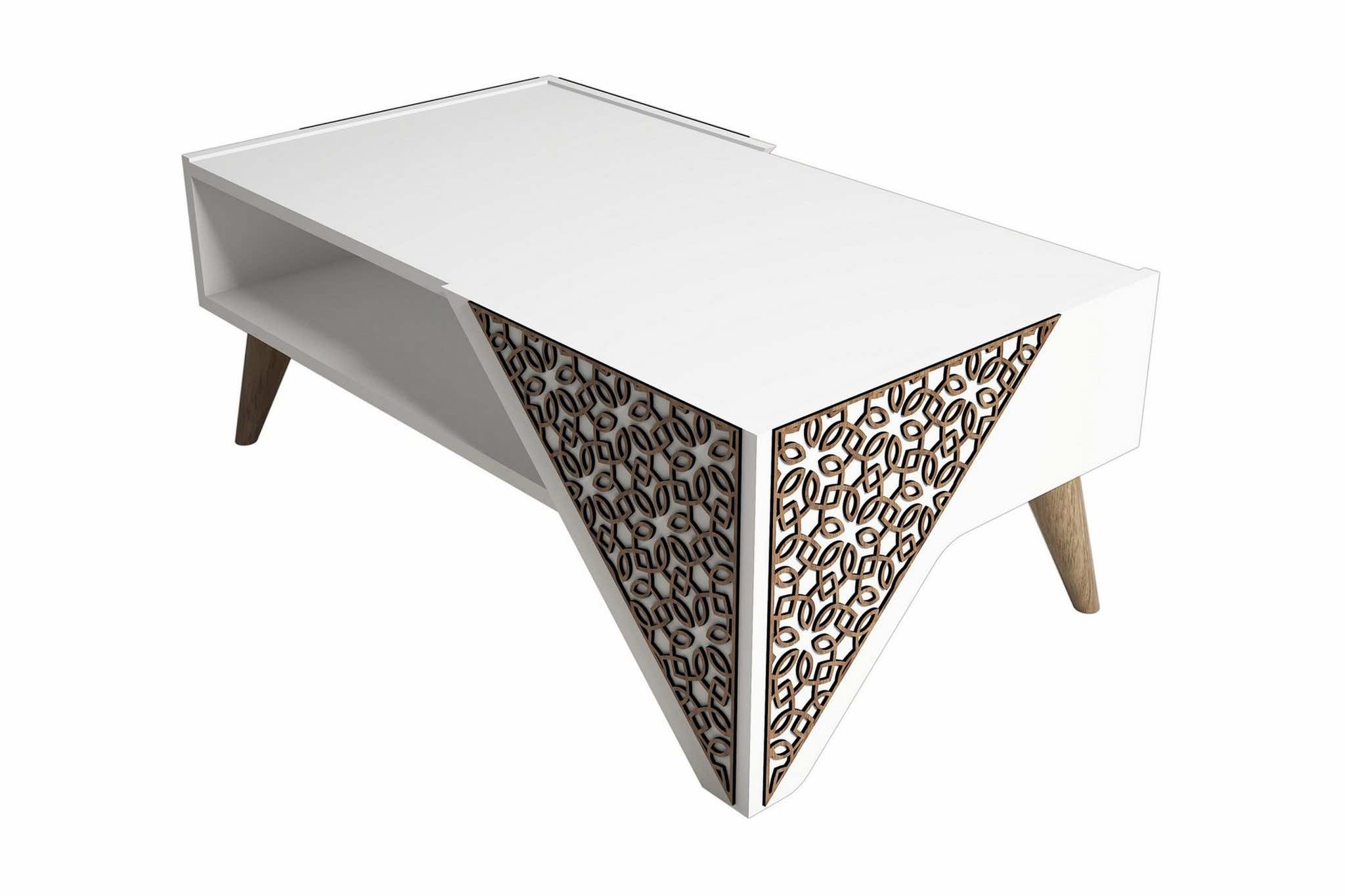 Soffbord Amtorp 105 cm med Förvaring Hylla Blommönster – Vit/Brun