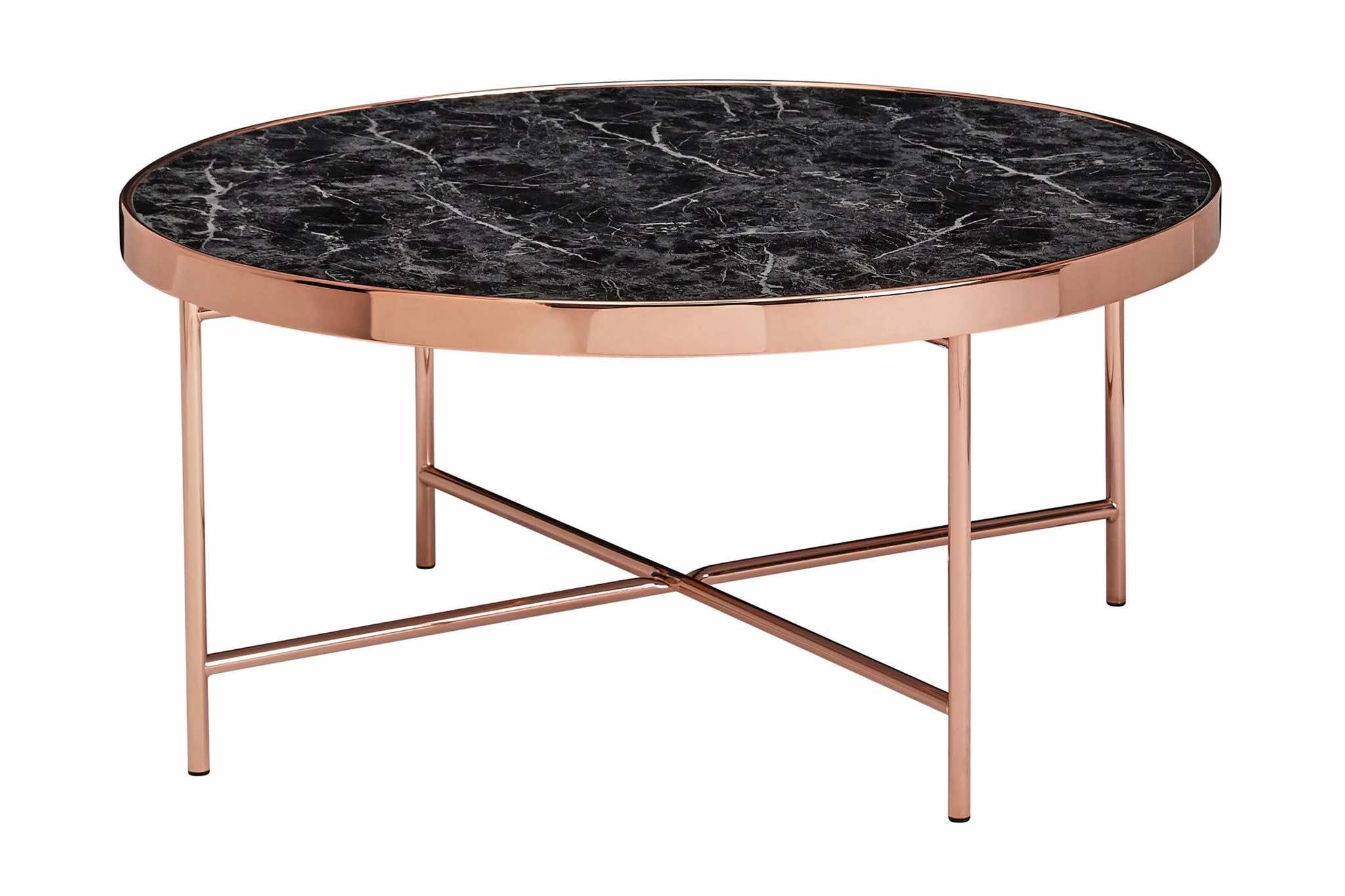 Soffbord Coplow 83 cm Runt Marmormönster – Glas/Svart/Mässing