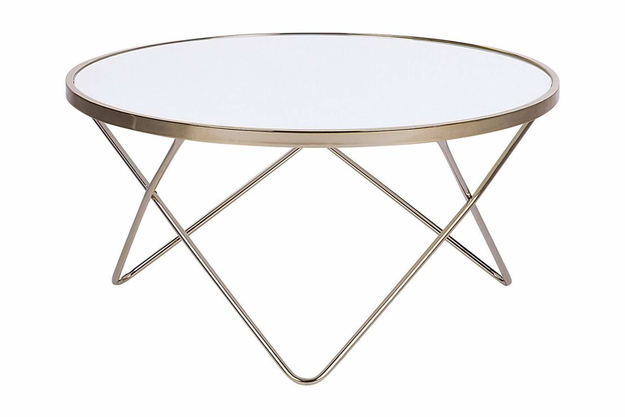 Detta runda soffbordet i en art deco-design passar till varje inredningsstil. Den vita plattan är tillverkad av slitstarkt glas medan den stabila konstruktionen är tillverkad av förkromad metall. Den tidlösa designen fungerar bra i både moderna och klassiska rum. Material: härdat glas. Ytterligare material: metall. Vikt: 14 Montering: Ben bör monteras Vikt kapacitet: 30 Produktfördelar: Högkvalitativa material, Långvarig, Modern design, Väl lämpad för olika inredningsstilar, Tar upp lite utrymme