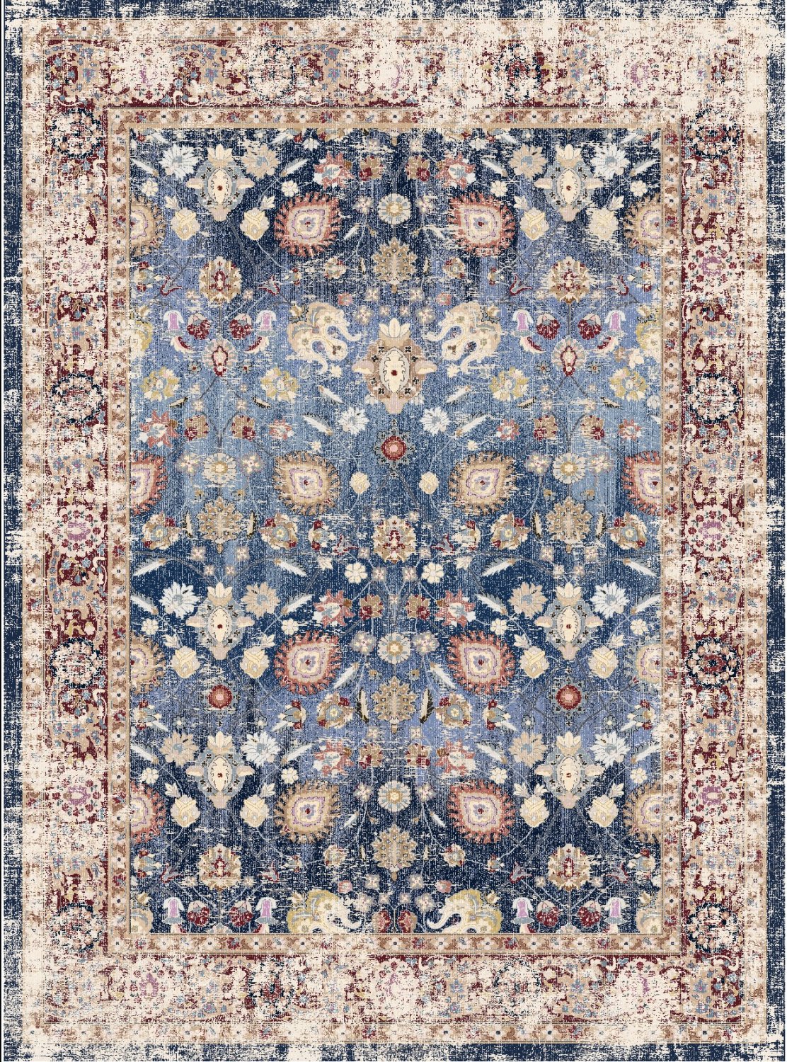 Wiltonmatta – Bouhjar (mörkblå/multi) (Storlek: 240 x 340 cm)